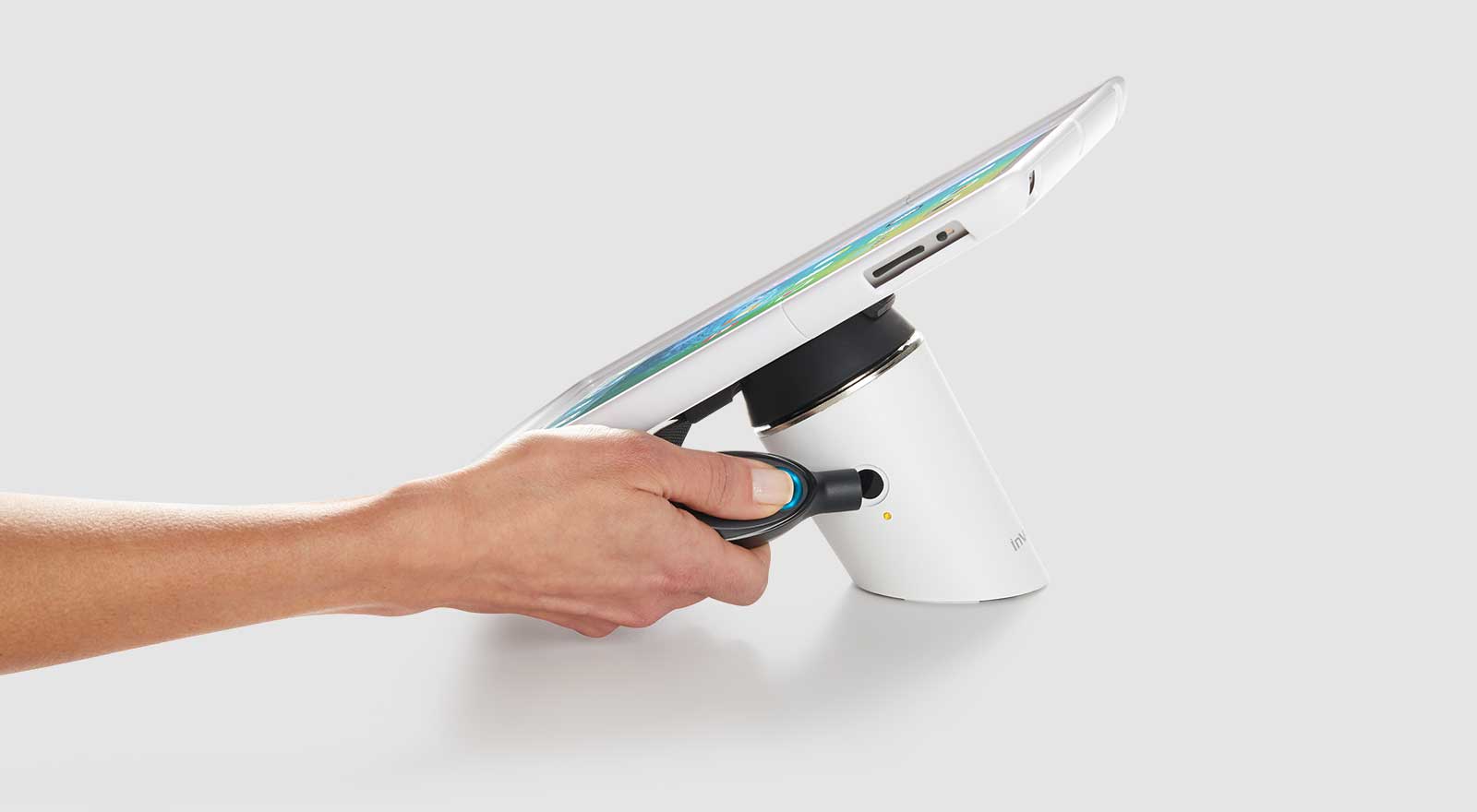 Với chìa khóa độc quyền IR2 của Invue, máy tính bảng có thể dễ dàng được tháo ra để sử dụng linh hoạt hơn. Chìa khóa IR2 sẽ được lập trình một mã code dùng cho mỗi địa điểm khác nhau và được tăng thêm tính bảo mật